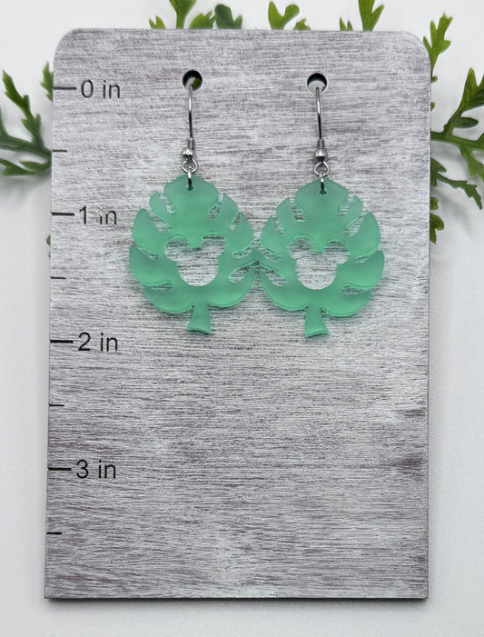 Tropical Monstera Mouse, Laser Cut Light Green Matte Acrylic Earrings, Monstera Leaf Dangle Earrings Polynesian Earrings