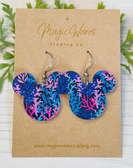 Coral Reef Mouse head Laser cut Acrylic Earrings, Colorful Coral Pattern Acrylic Earrings, Summer earrings, Under the Sea, Beach earrings