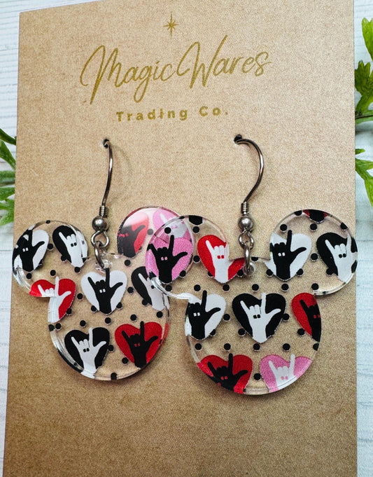 Love Signs Mouse head Dangle Earrings, Laser cut Crystal Acrylic Dangle Earrings, Valentines earrings