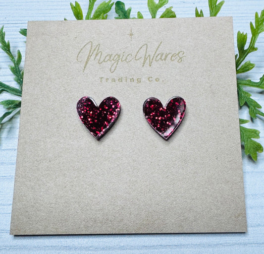 Heart Stud Earrings Red Glitter Laser Cut Glitter Acrylic Post Earrings Pierced Earlobe Glitter Valentines Day earrings hypoallergenic